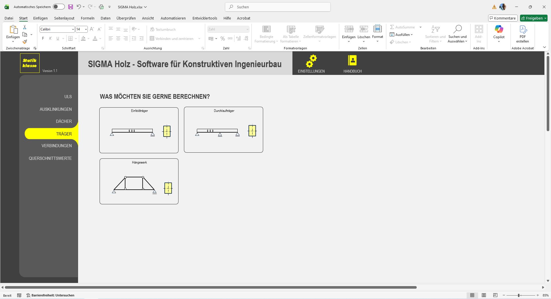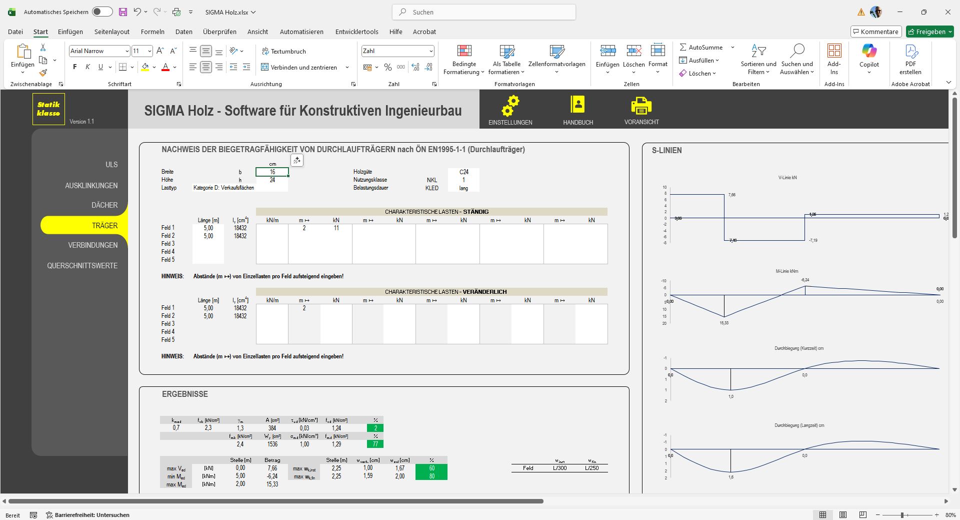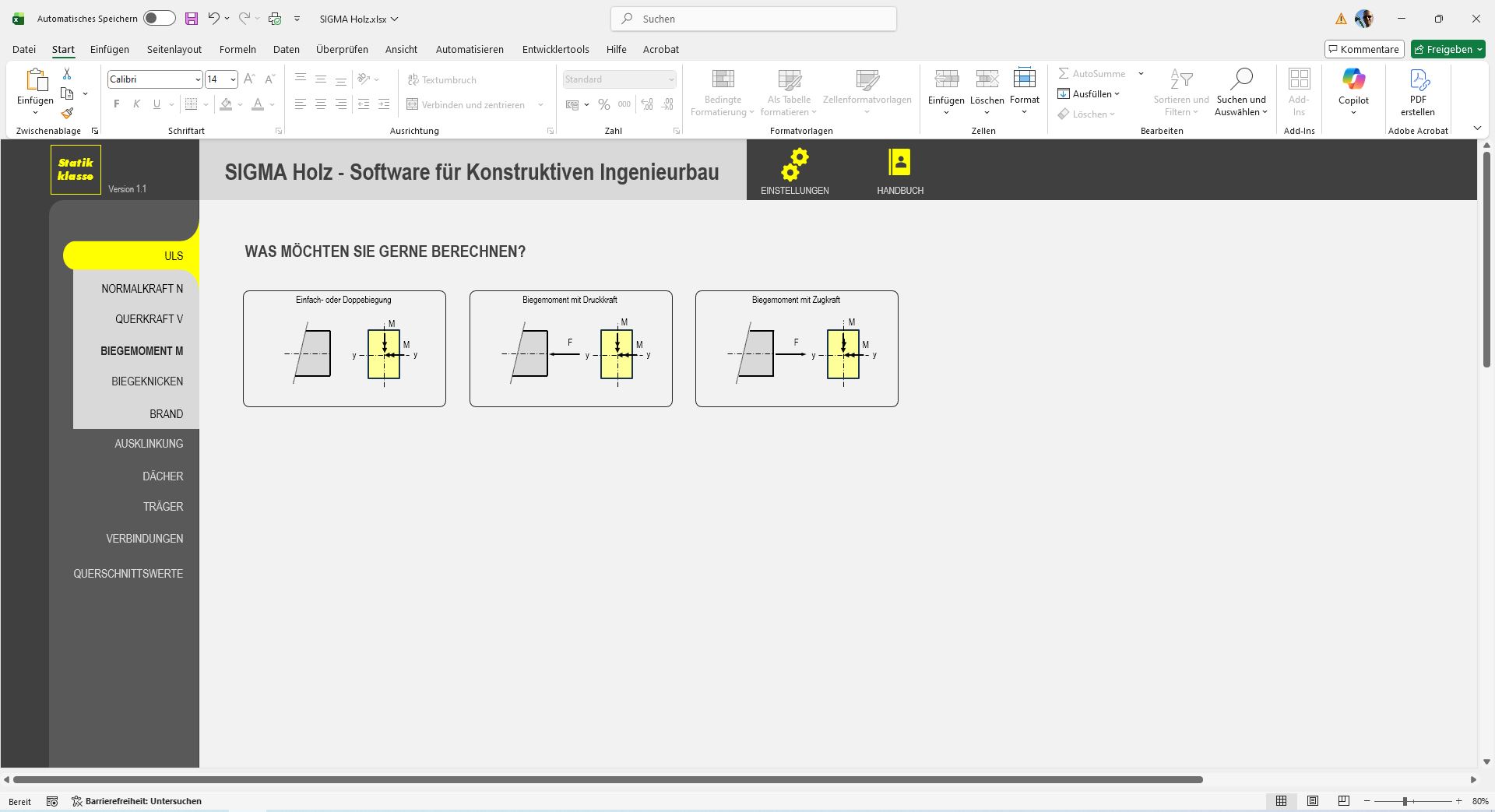 SIGMA combines the simplicity of Excel with the power of professional structural analysis software—ideal for engineering offices that want to work faster, more transparently, and in full compliance with standards.
